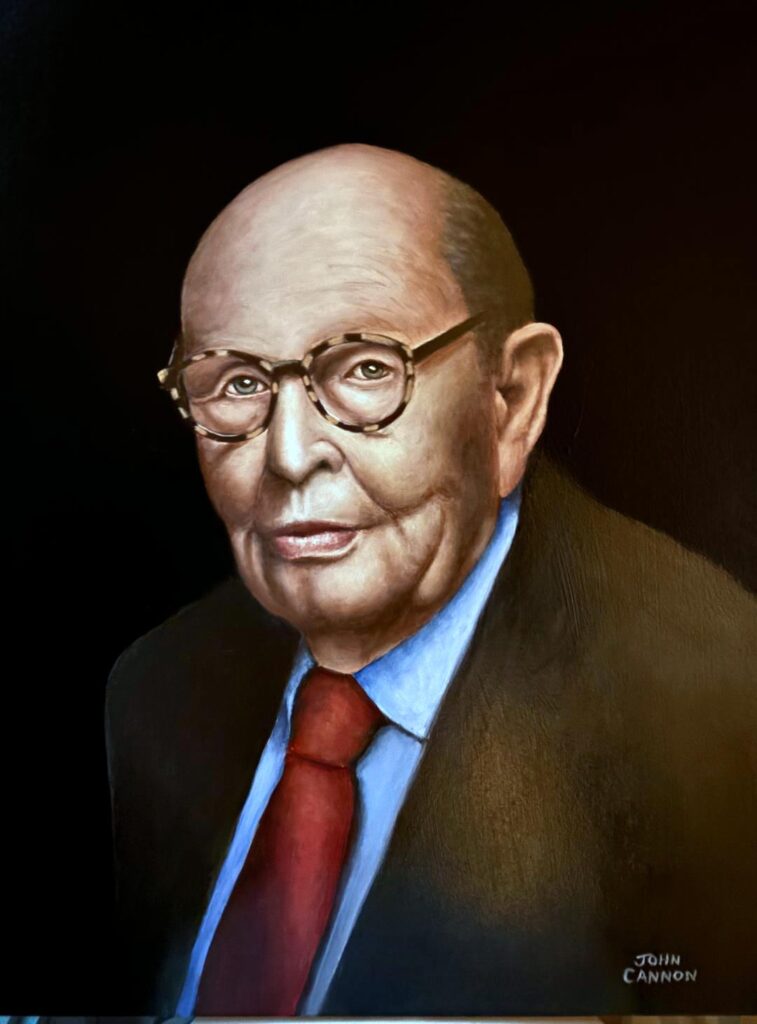 Here is the portrait of Charles English. Pardon the glare on some of these photos; I had a very difficult time getting decent photos of the paintings. As you know, pets have been my main stay for many years. I’ve occasionally done people portraits. but this was by far the largest and most difficult project I’ve done. Each portrait is 18×24, so they are somewhat large. They will be framed and hung in the law offices. When I get a photo of the completed hanging, I’ll post that.