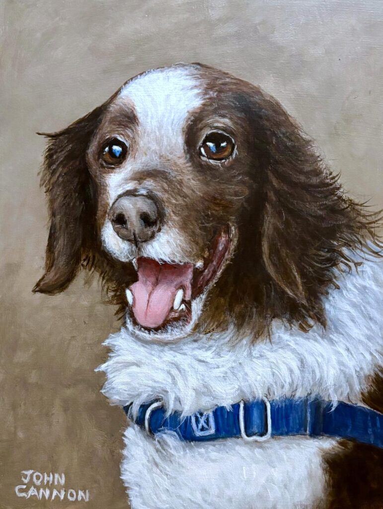 Last week I posted a painting of Rocky on his boat. Today, this is Rocky’s headshot portrait. My client wanted two portraits of him in different settings; hence the outdoor and indoor poses. Rocky was very special to my client. From what she told me, Rocky was one of those “love of my life” dogs. If you have been very, very lucky, you know what I mean. I was so honored to get to paint him for her, and hold his memory close forever.
