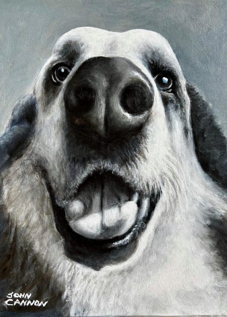 This is the first of the new portraits I’ve been working on. This is Sonny. The reference photo was in black and white, so the painting is as well. I have to say I am so happy with the black and white look. Maybe I should do more black and whites. I can always turn a color reference photo into b&w. Let me know what you think. There is another b&w portrait to come. That one has a long and interesting story, which I’ll share next week.
